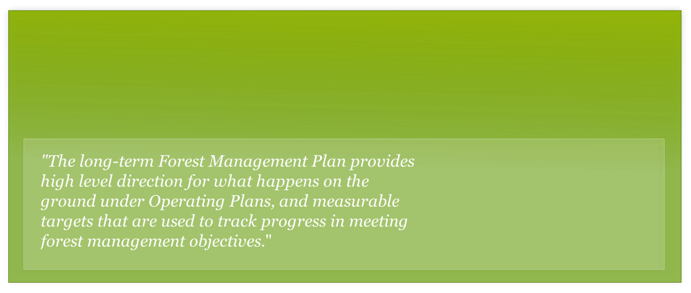 A Forest Management Plan (FMP) must be prepared to provide strategic-level direction for management of forest resources in a Timber Supply Area.